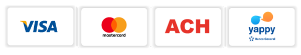Visa, MasterCard, Transferencias Bancarias, Depósitos, Yappy y Pagos en Efectivo.