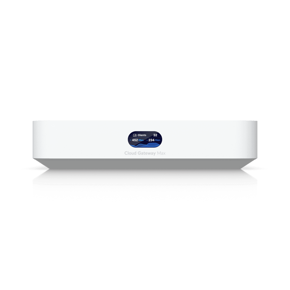 El Ubiquiti UniFi Cloud Gateway Max (UCG‑Max) es un gateway compacto de alto rendimiento, diseñado para centralizar la gestión de redes UniFi. Con soporte para más de 30 dispositivos UniFi y hasta 300 clientes, ofrece seguridad avanzada con IPS de 2.3 Gbps y conectividad 2.5G, ideal para despliegues modernos y escalables.
