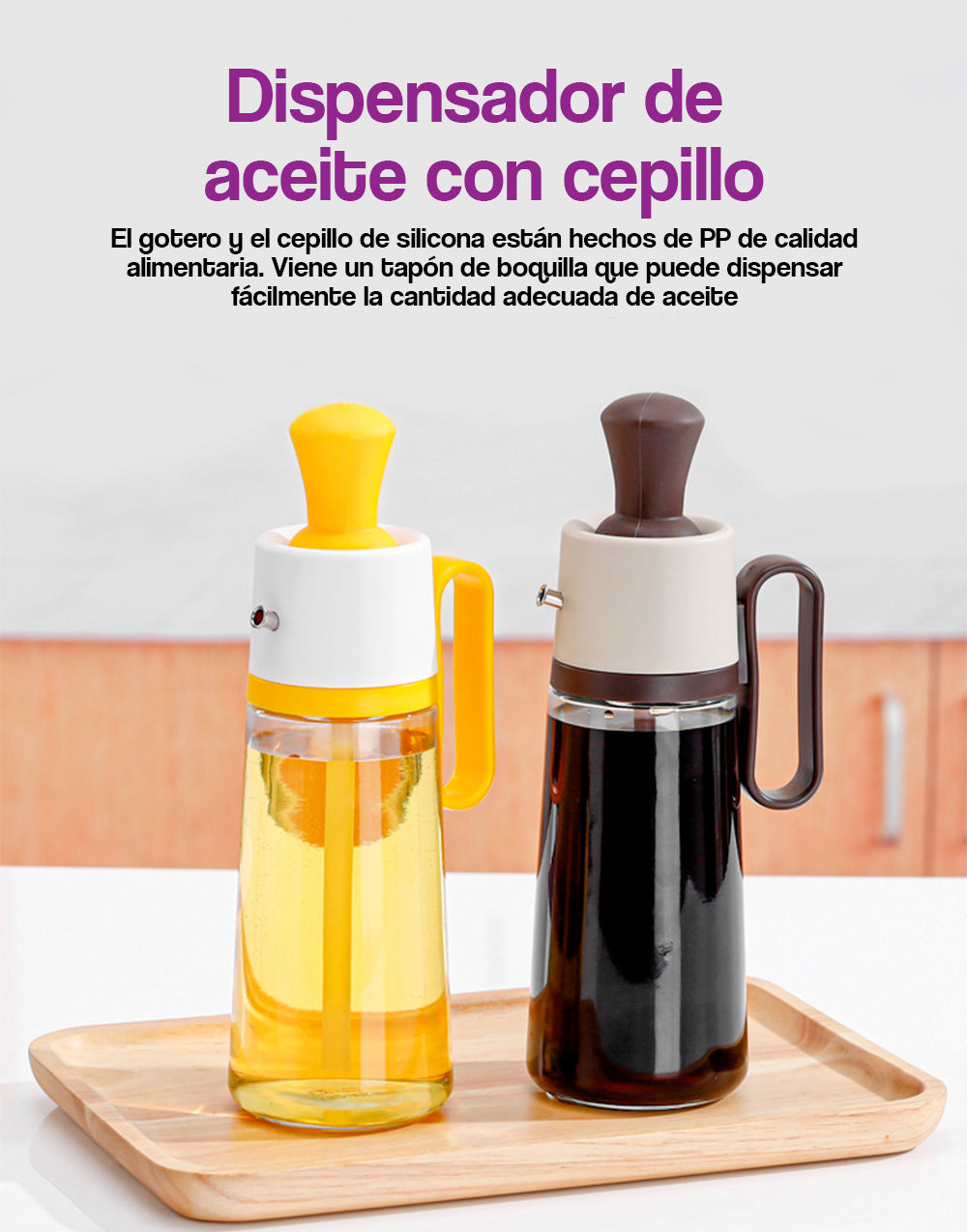 Esta botella dispensadora de aceite 2 en 1 consta de botella de vidrio, contenedor de almacenamiento de aceite usado y cepillo de silicona con contenedor de aceite dosificador, se puede utilizar varias veces hasta que se use el aceite en el almacenamiento sin aspirar aceite nuevo.