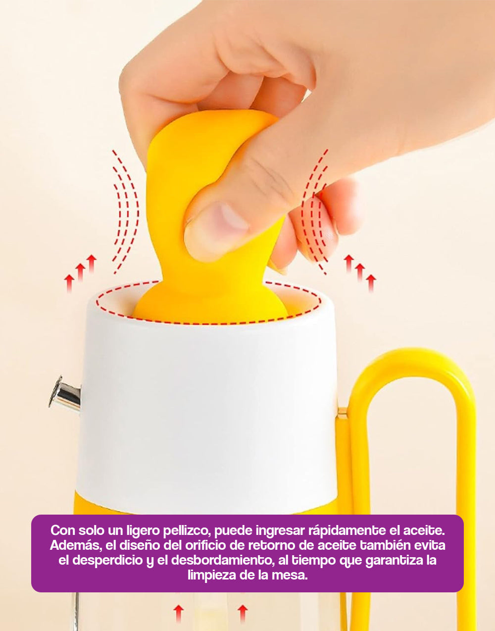 El aceite limpio y el aceite usado están separados para que el aceite usado no vuelva a la botella y ensucie el nuevo. Limpia los residuos de comida y deja caer aceite en la parte media después de cada uso