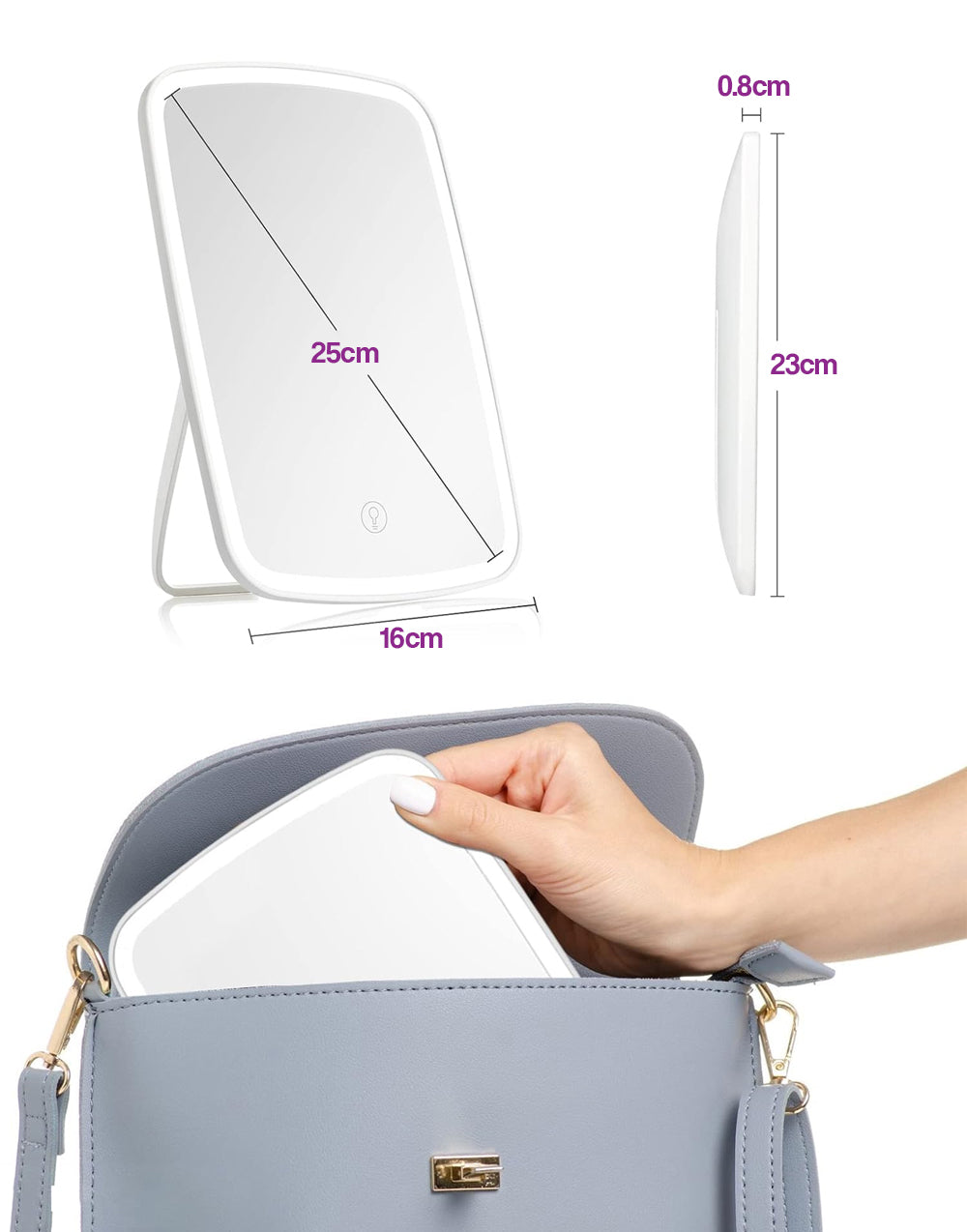Con carga de cable USB, nuestro espejo LED de maquillaje integrado con batería de litio de 1200 mAh, que puede funcionar hasta 240 minutos de tiempo de trabajo para el espejo de escritorio con el máximo brillo.