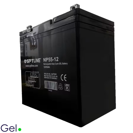 Batería SPTLINE 12V 55Ah – Gel Sellada – Ciclo Profundo – 229×138×208 mm