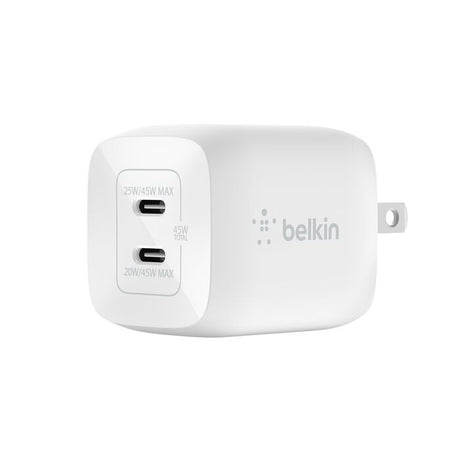 Adaptador de Corriente Belkin BoostCharge GaN + PPS 45W – 2 Salidas USB-C – Blanco WCH011dqWH