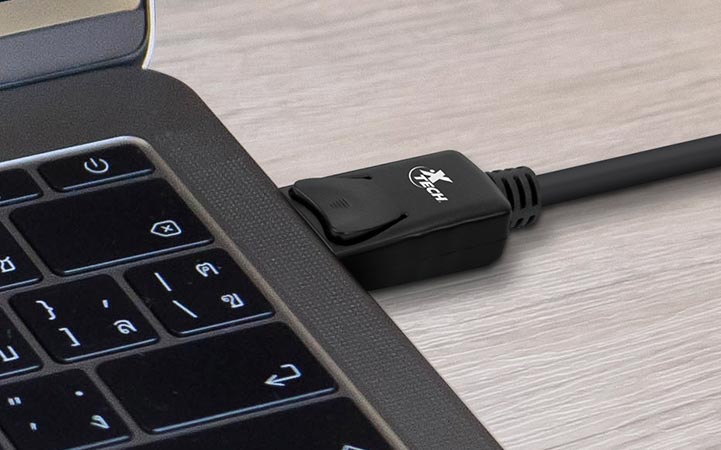 Cable DisplayPort Macho a Macho 1.8m con Bloqueo Xtech Negro