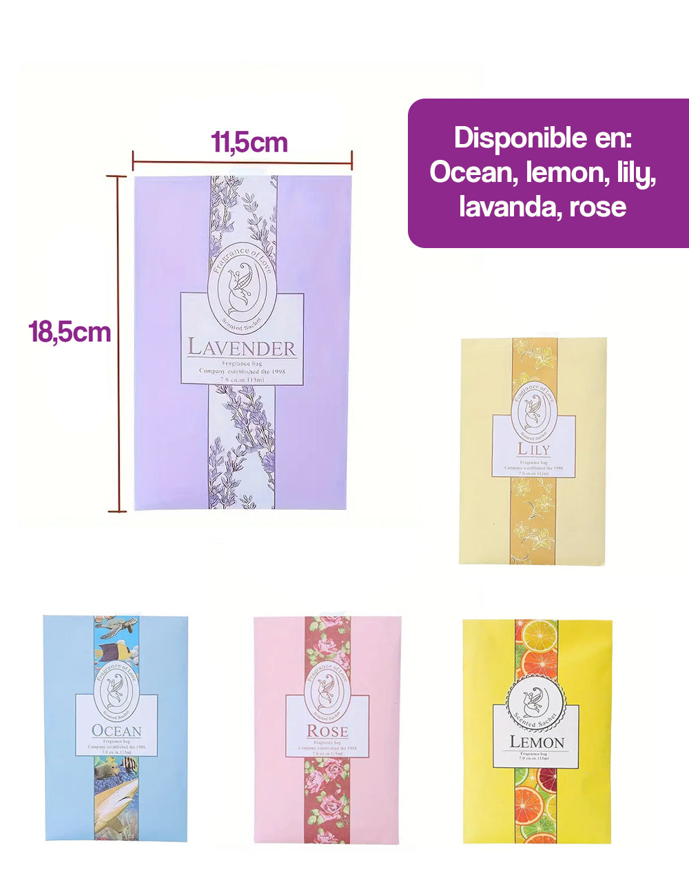 Cada bolsita perfumada está envuelta individualmente para mantener el olor y darte una experiencia diferente. Fresco muy práctico para el hogar.