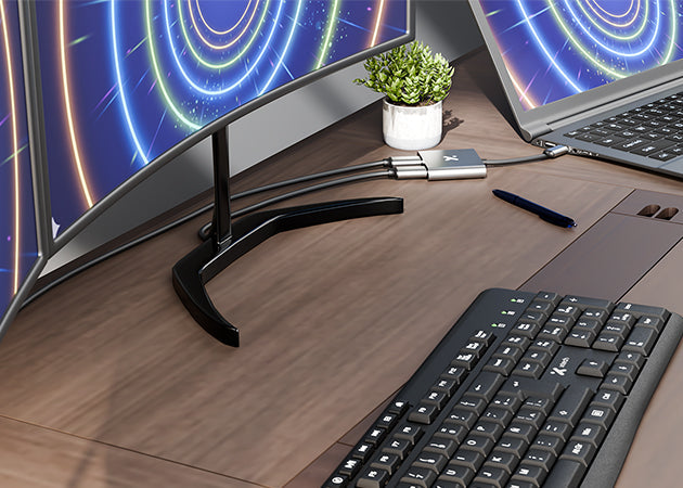 El Adaptador XTC‑548 convierte un puerto USB‑C® en dos salidas HDMI®, permitiendo trabajar con pantallas grandes o proyectores sin complicaciones. Su diseño compacto y metálico asegura durabilidad, mientras que la compatibilidad universal lo hace ideal para laptops, tablets y ultrabooks modernos.