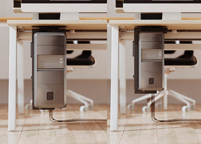- Montaje seguro de PC o UPS bajo escritorio o en pared